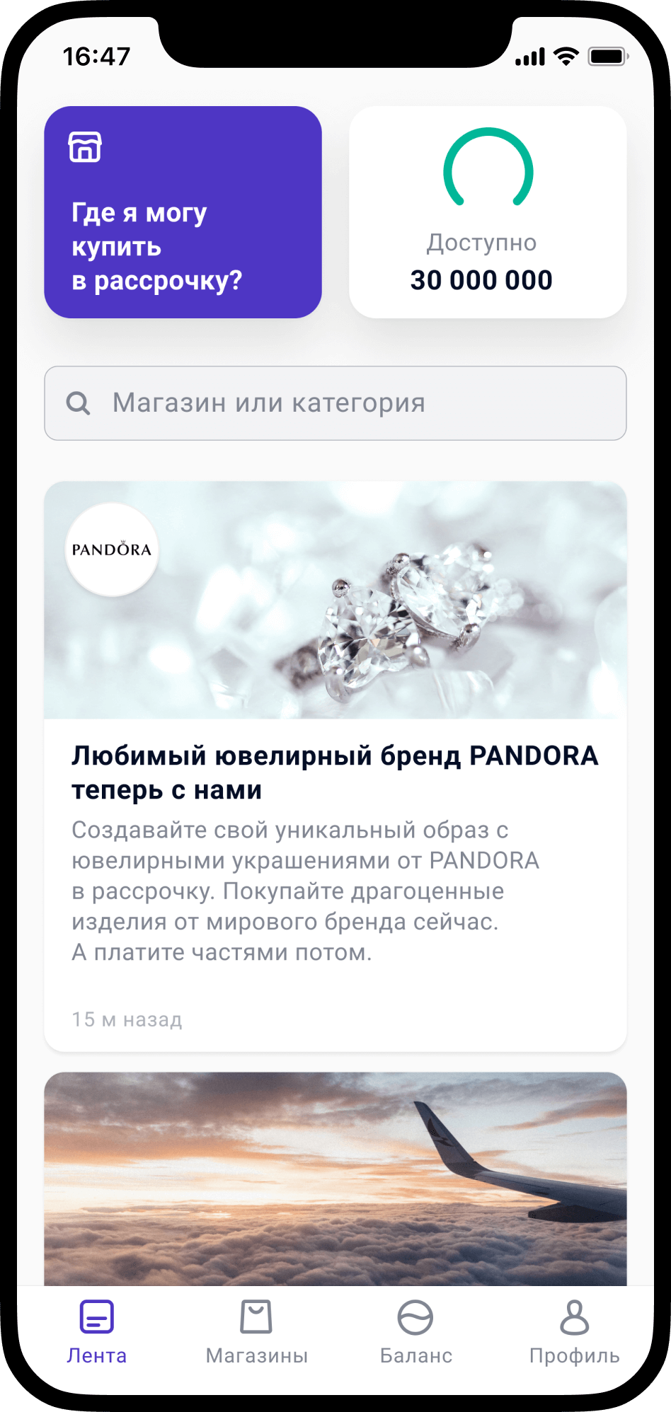 The result of all our efforts was a stylish client bank with intuitive registration, a visual catalog of partner stores, a meaningful news feed and familiar financial instruments