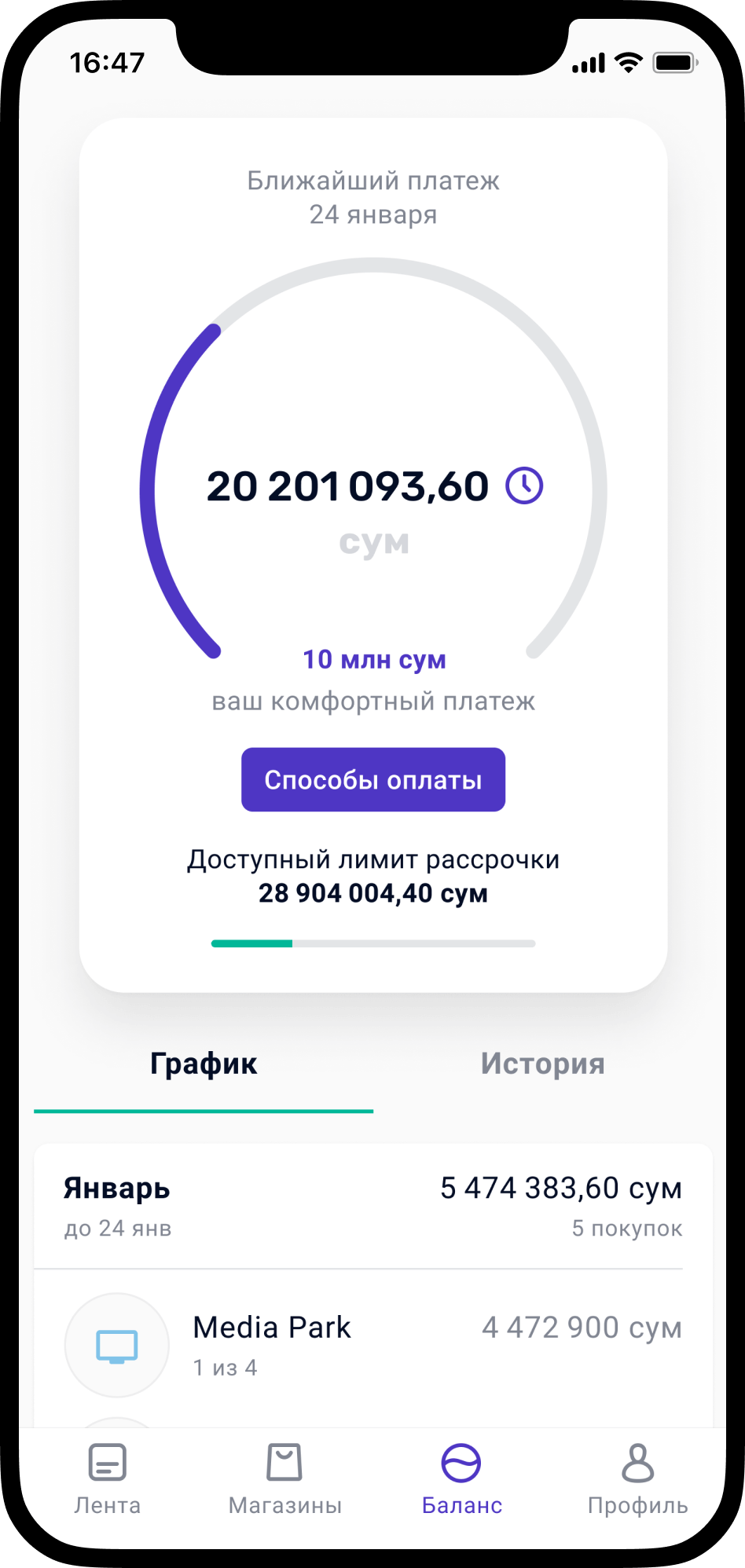 Mobile bank-client of the first interest-free installment card in Uzbekistan